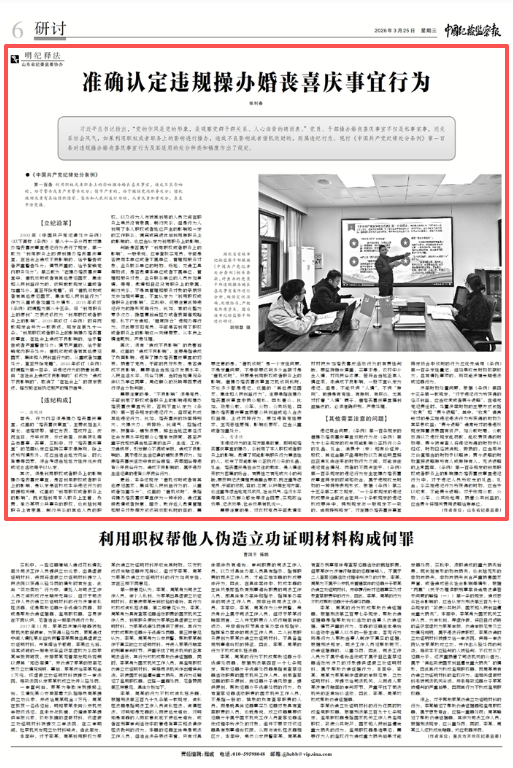 为巩固深化党纪学习教育成果,推动党的纪律教育常态化长效化,《中国纪检监察报》纪法周刊与山东省纪委监委联合推出系列文章,围绕党章党规党纪进行宣传阐释,2026年3月25日刊发文章《准确认定违规操办婚丧喜庆事宜行为》。 全文如下: