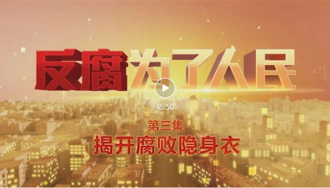 《反腐 为了人民》第三集《揭开腐败隐身衣》透过3个案例,讲述纪检监察机关贯彻落实党中央决策部署,不断深化对反腐败斗争的规律性认识,时刻紧盯新型腐败和隐性腐败,持续丰富防治的有效办法,确保党和人民赋予的权力始终用来为人民谋幸福。